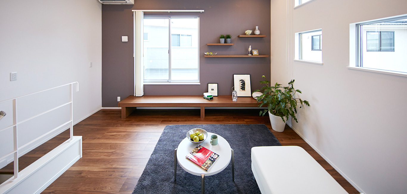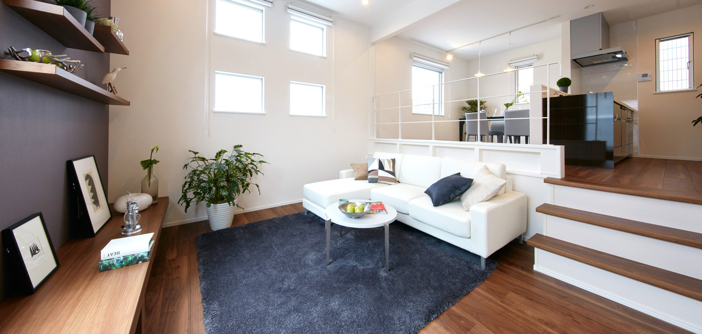 ステップを設けることで、空間のゆとりだけではなく目線や動線も大きく変わります。間仕切りなくスペースに独立性を持たせられるので、一体感のある開放的な空間が生まれます。